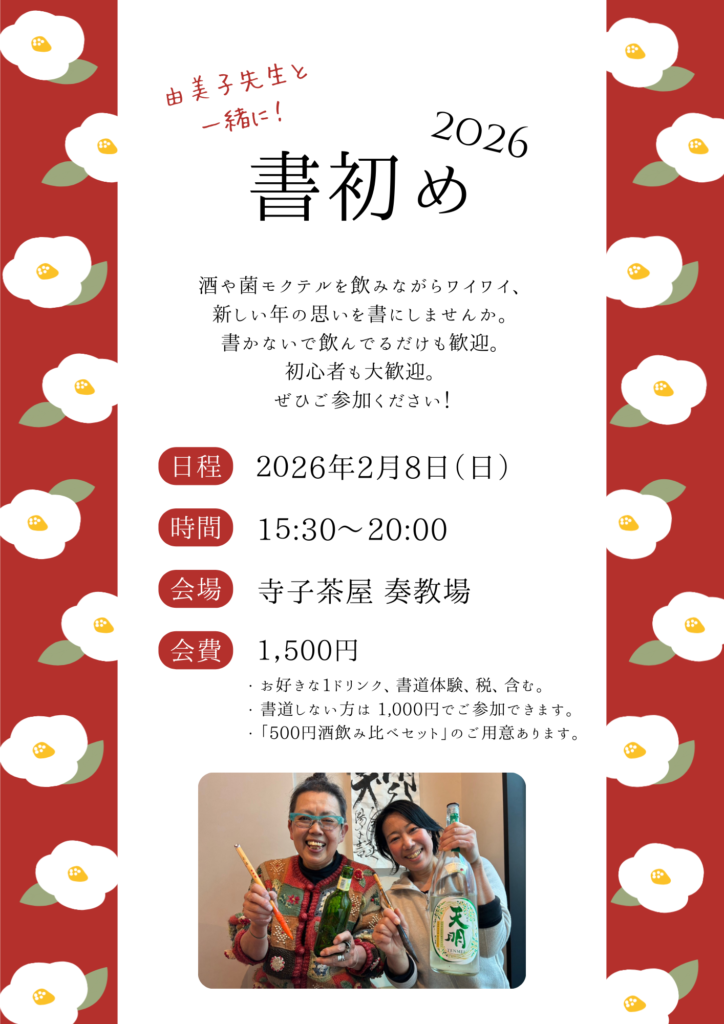 酒や菌モクテル(ノンアルカクテル)を飲みながらワイワイと、新しい年の思いを書にしませんか。