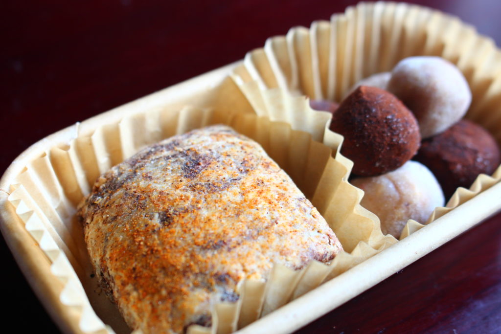 どちらかの好きなスコーンと、桜ホワイトボウルとデーツチョコボウル(どちらもグルテンフリー)を詰め合わせた『バレンタイン菌アソート』を3日間限定販売します。